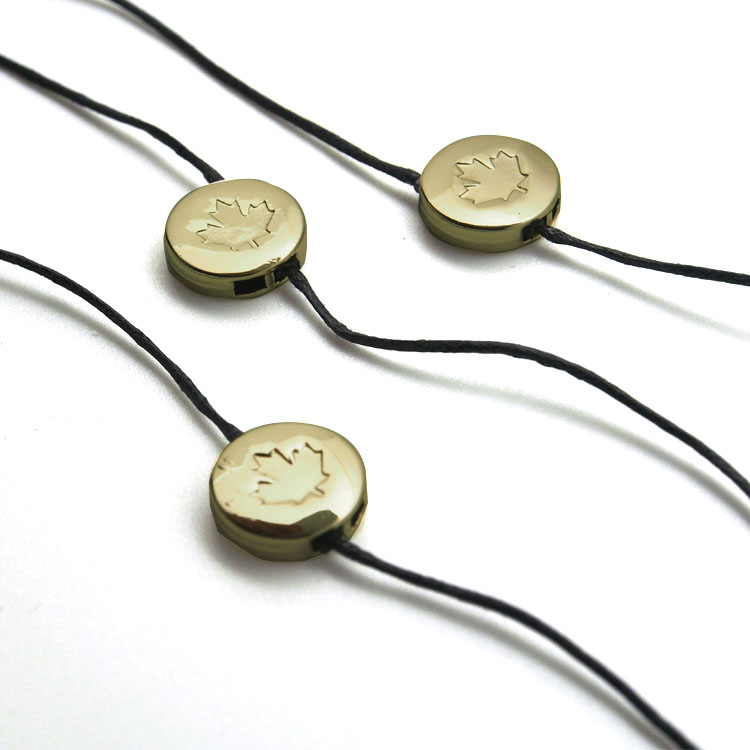 吊粒按loogo(名称)色可分为:烫金(指各类电化铝热转烫)吊粒、烫色吊粒、印刷吊粒、滴塑吊粒,其中印刷及滴塑颜色较丰富,可随意调制,但成本略高,生产周期稍长,目前普遍采用烫金工艺。