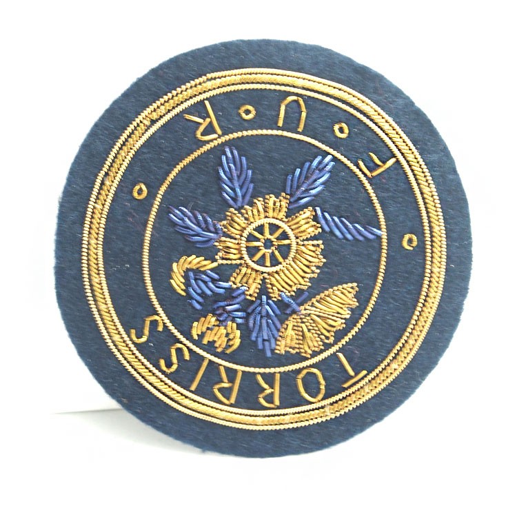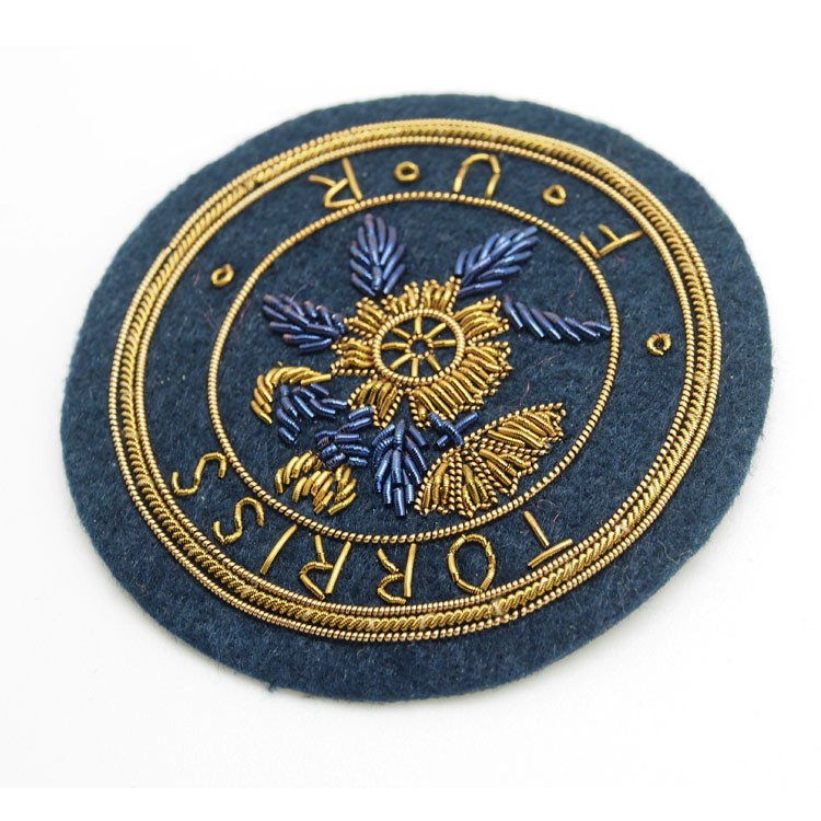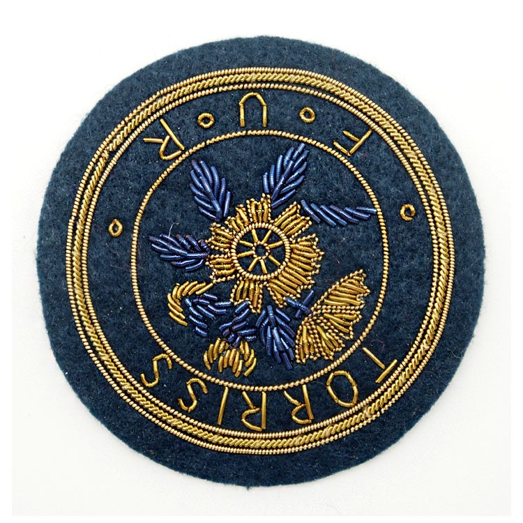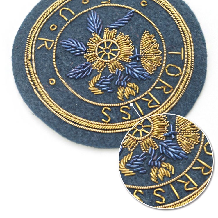 印度丝绣花章,早起源于印度,故又称印度丝徽章、铜丝徽章、弹簧丝徽章、印度绣花章、金属刺绣章等,采用印度特有的金属线为主要材料,并用传统的手工艺绣花,一针一线刺绣而成。其手工精细,令人叹为观止,绣出来的产品高档华丽,层次分明。